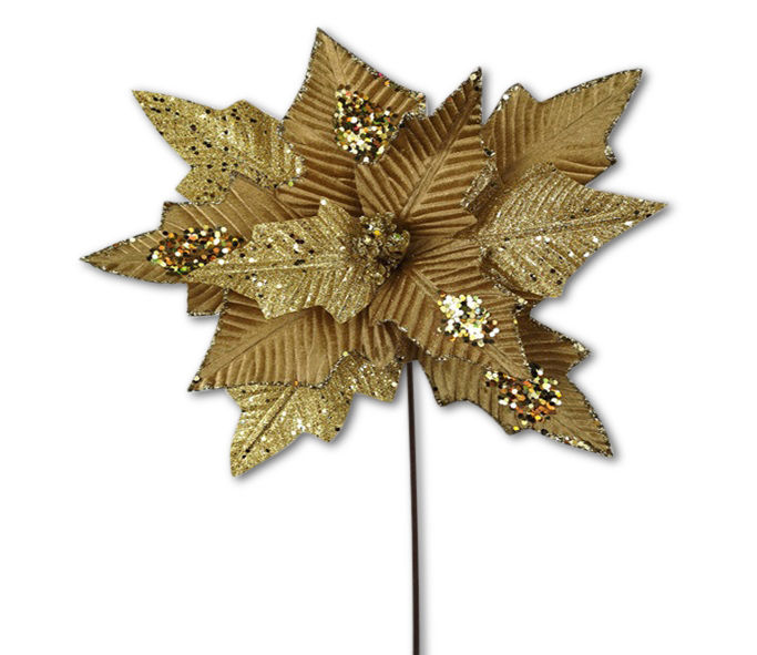 Poinsettia Glitter Petal Gold 28cm